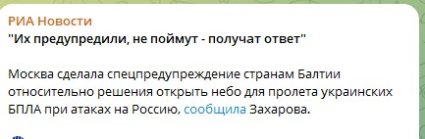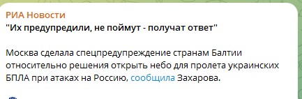 Я конечно могу ошибаться, но похоже, что вчерашнее "спецпредупреждение" странам Балтии по открытию неба для украинских БПЛА не сработало.