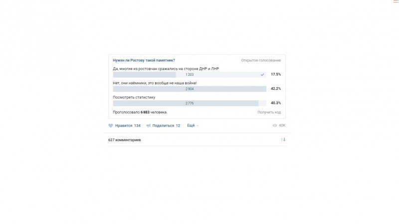 Голосование напомню было по теме нужен ли Ростову памятник добровольцам Донбасса. В комментариях добрые ростовчане высказали и причины, почему не нужен:
