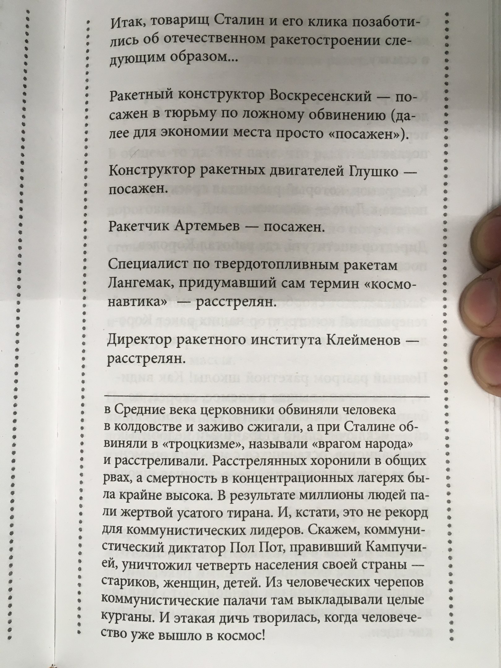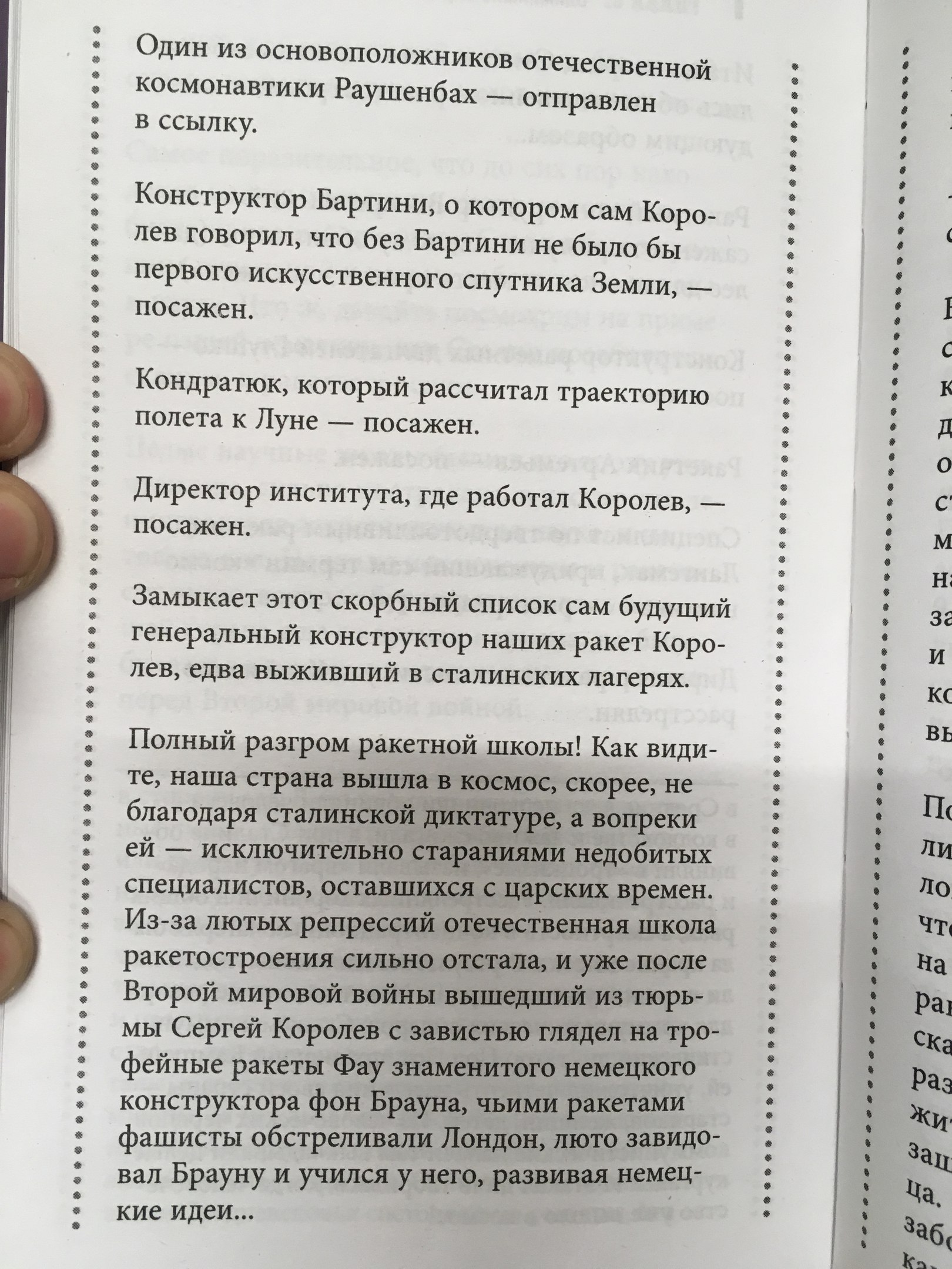 Ракетную школу так разгромили, что СССР первым запустил искусственный спутник Земли и запустил человека в космос. Такая вот отсталая ракетная школа в Советском Союзе была. Все из-за "лютых репрессий".