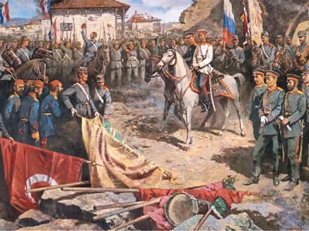 Также можно вспомнить, как он гениально переиграл их, турок, в освобождении г.Плевны, в Болгарии, которую освобождал от трехсотлетнего ига Османской империи. Когда турки думали, что русским не взять их измором, он просто сел в простой гражданский поезд и с батальоном своих гвардейцев прибыл на вокзал г.Плевны и объявил, что город теперь захвачен русской армией и султан Осман-паша подписал капитуляцию. Не имея полной информации о состоянии дел турки, видя такой конфуз, стали массово сдаваться.