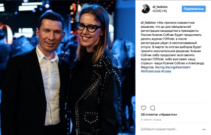 Накануне медиамагнат Александр Федотов публично объявил, что спонсирует избирательную кампанию Ксении Собчак. Конкретная сумма пока осталась за кадром. Ранее в числе возможных спонсоров Собчак называли Михаила Фридмана и Михаила Прохорова.