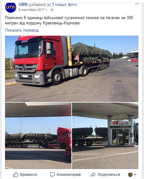 9 сентября 2017 года замечено шесть единиц военной гусеничной техники на тягачах в 300 м от границы Краковец-Корчева: