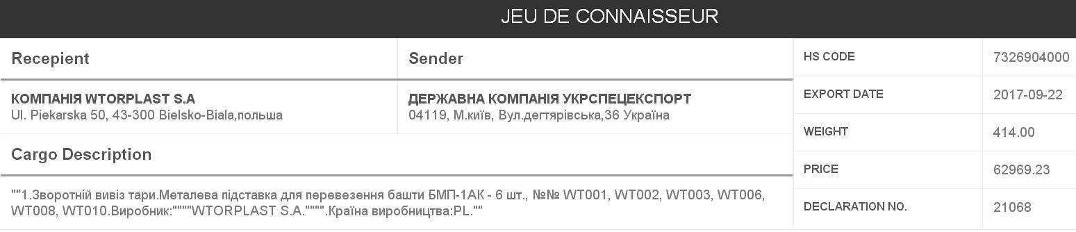 На следующий день Диана Михайлова находит подтверждение по импорту из Польши в Украину БМП-1АК: