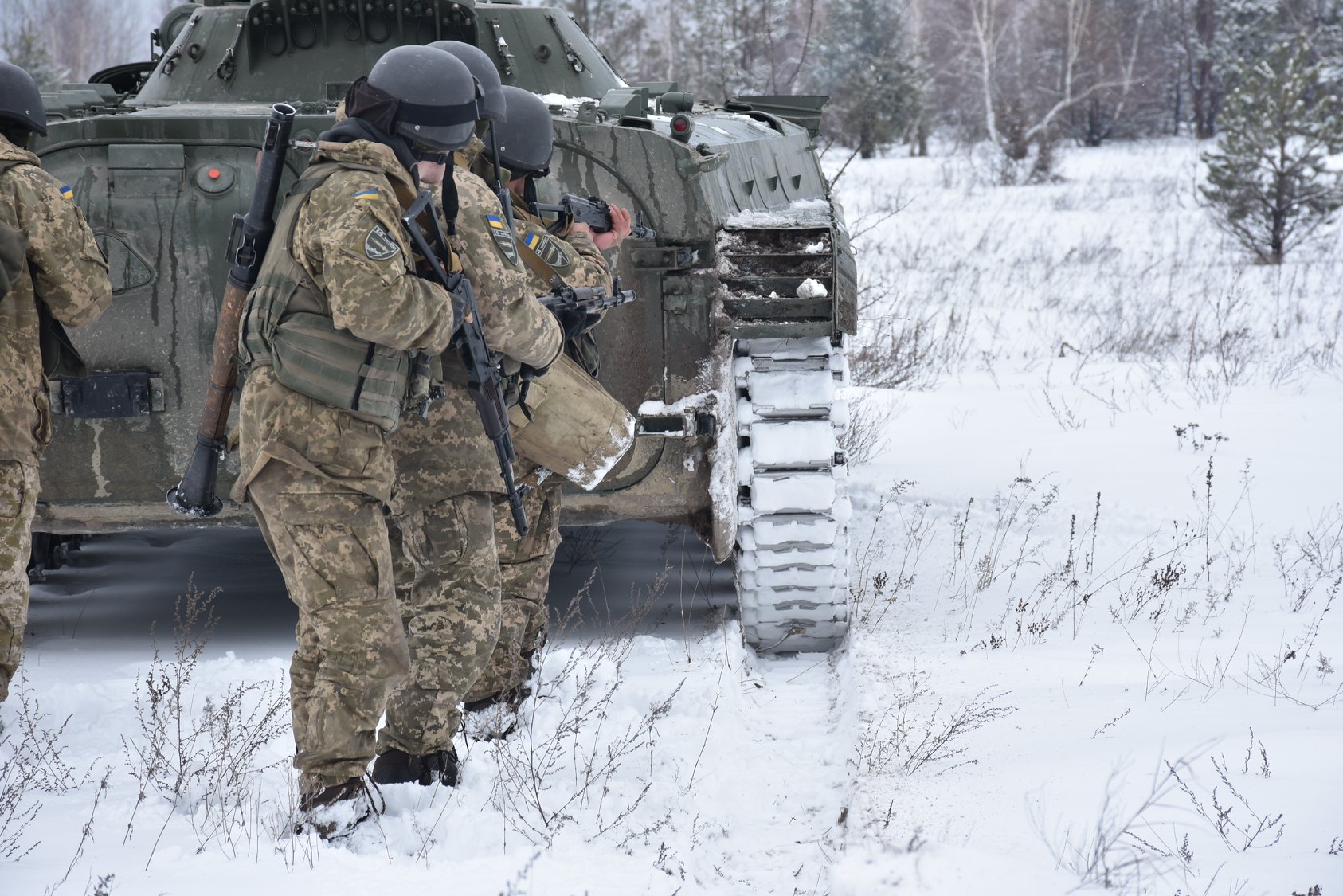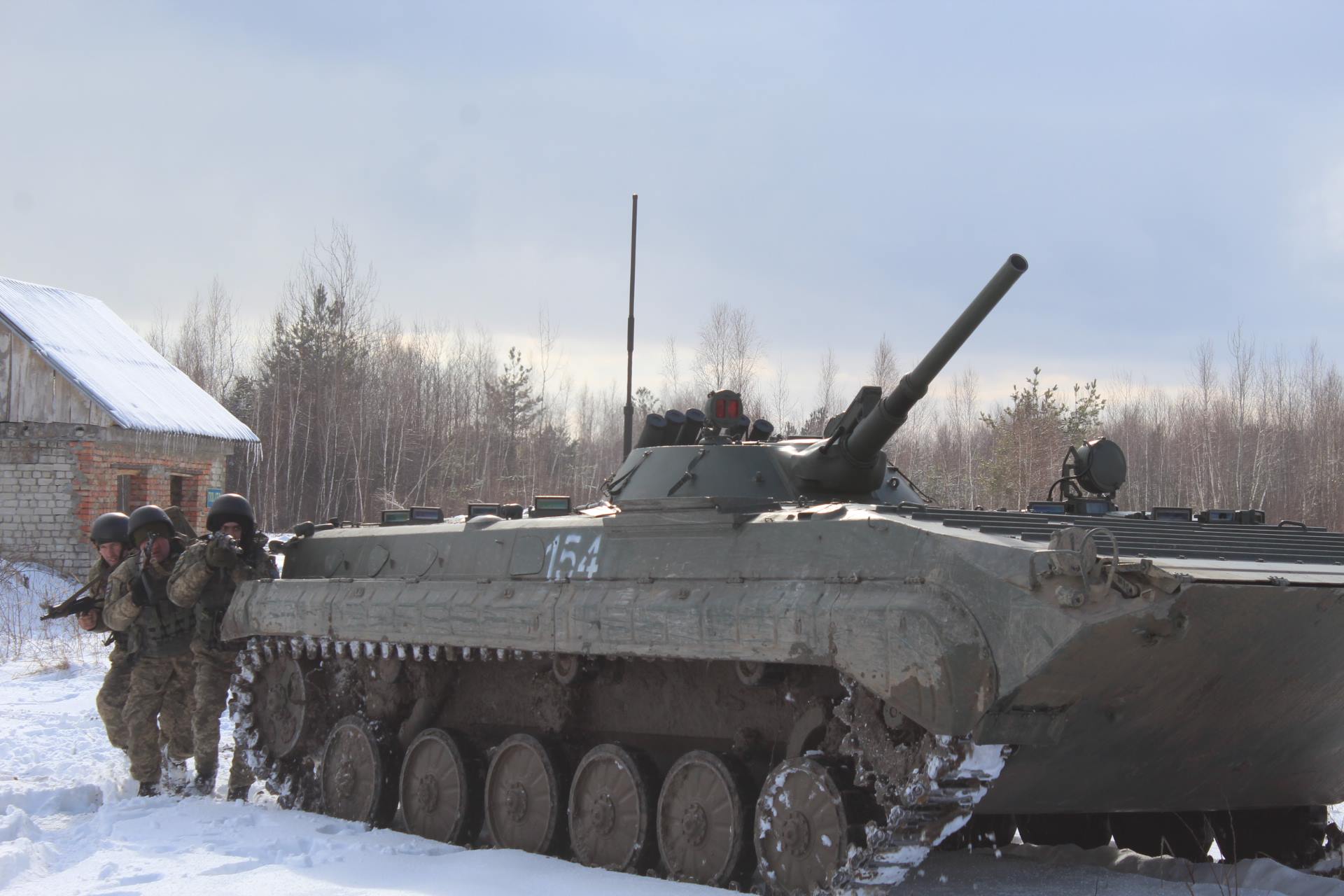 Февраль-март 2018-го, Ровненский полигон. На учениях, в составе 14-й ОМБр засвечены новые БМП. На вид обычные БМП-1, с направляющей для "Малютки", без надбоя на башне, но с системой постановки дымовой завесы "Туча" и антенной, по типу той, которую сейчас устанавливают на ЖБТРЗ. Такого сочетания на БМП-1 ВСУ, массово, ещё не встречалось.