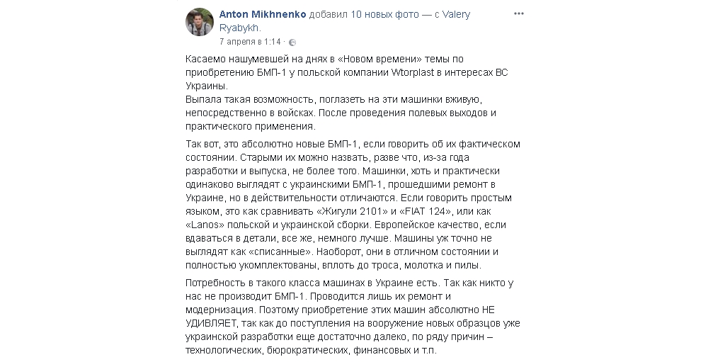 5 апреля 2018 года издание "Новое время" публикует продолжение истории с БМП-1К: