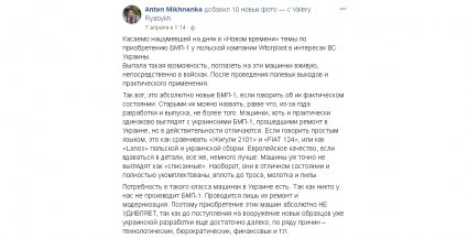В свою очередь, польская компания Wtorplast обратилась к изданию "Новое Время" по поставке БМП-1 на "Житомирский бронетанковый завод".