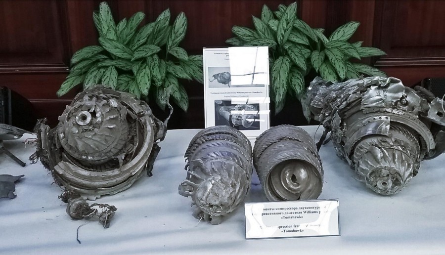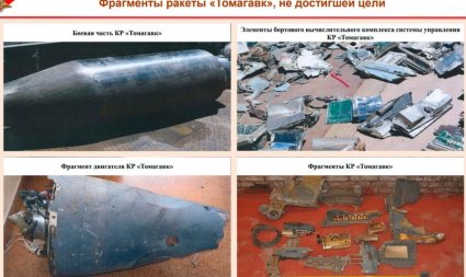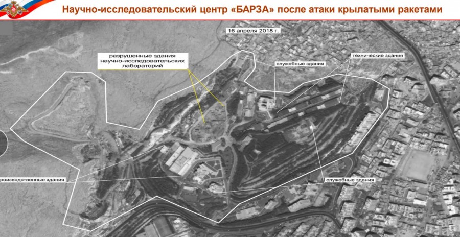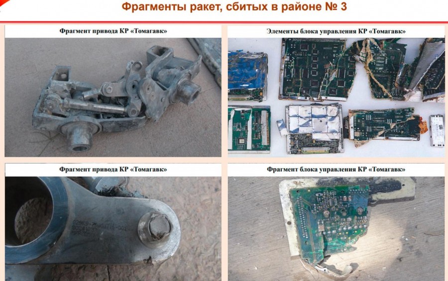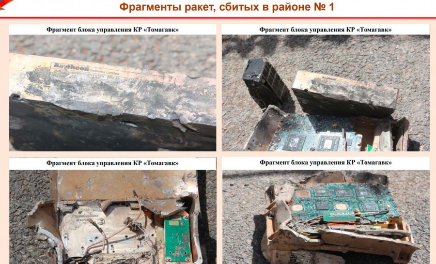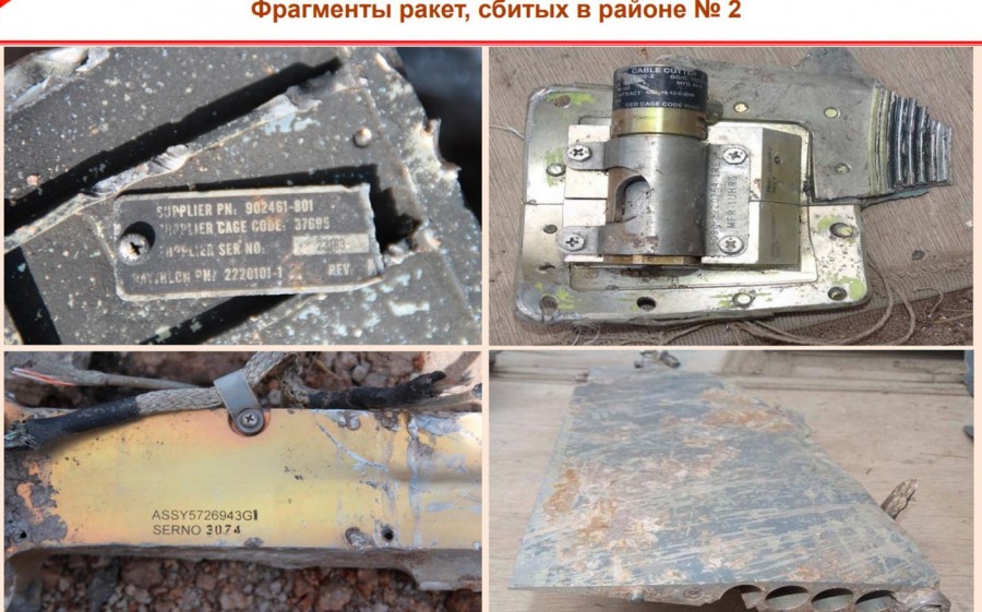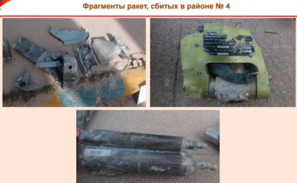Слайды брифинга МО РФ про трехстороннюю агрессию 14 апреля на Сирию с показом уцелевших обломков.
