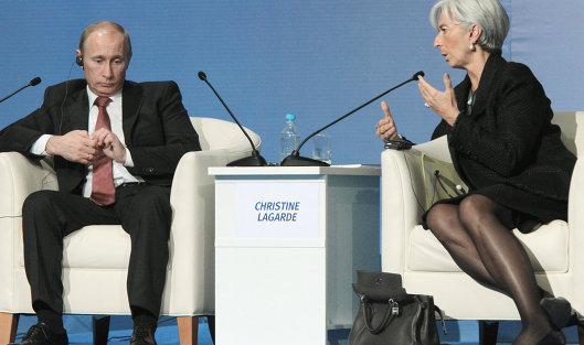 Вот вам, кстати, старое фото, где очень красноречиво представлена диспозиция - президент РФ & глава МВФ...