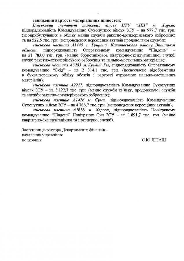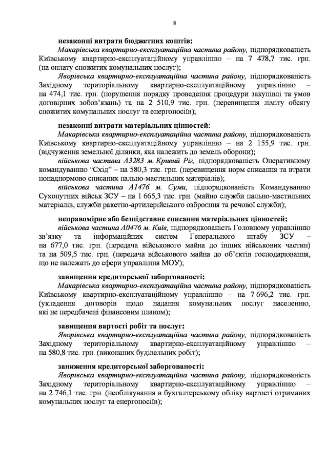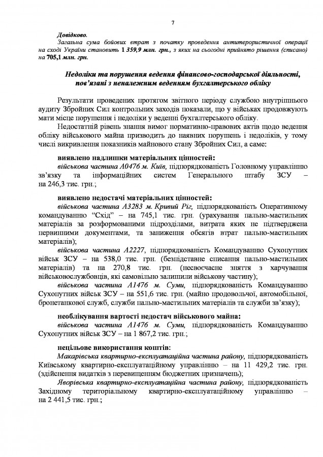 Документы внутренней отчетности ВСУ указывающие на масштаб невозмещенных убытков, не целевого использования бюджетных средств и потерь от взрывах на складах боеприпасов.