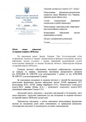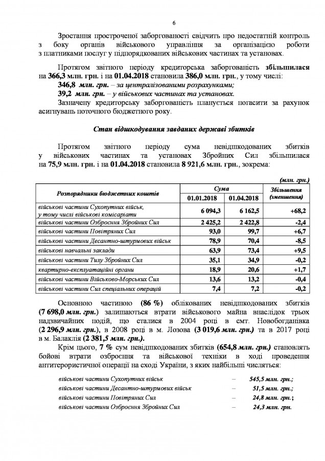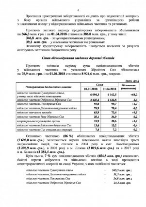 Кроме этого, что тоже интересно, 7% суммы невозмещенных убытков (654800000. грн.) составляют боевые потери вооружения и военной техники в ходе проведения антитеррористической операции на востоке Украины. Данная цифра гораздо скромнее, однако при сравнении становится ясно, что воинам ДНР и ЛНР можно даже не наступать, укры и так прекрасно справляются с задачей разрушения собственной армии и экономики. Еще в данных документах, прикрепленных ниже, приводится информация о нарушениях в составлении и подаче отчетности в Вооруженных силах Украины за первый квартал 2018 года.