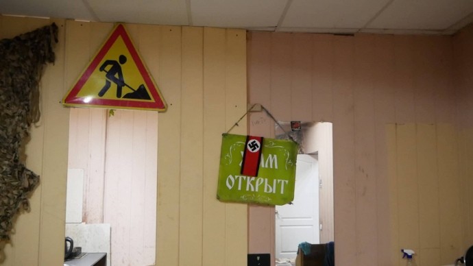 Журналисты «Украинской правды», зашедшие в здание вместе с полицией, опубликовали ряд фотографий помещения офиса «активистов», на которых можно увидеть большой портрет вождя «Третьего рейха Адольфа Гитлера, а также нацистскую символику.
