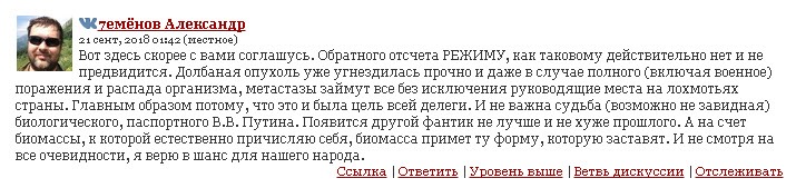 что надежды на скорые и радикальные перемены в ней в лучшую сторону останутся иллюзиями", - а я, в целом соглашаясь с авторской характеристикой текущего момента и обозримого будущего, рискну дополнить, что скорых перемен в лучшую сторону, конечно, ждать не стоит, но радикальные перемены неизбежны, а какими они будут и к чему приведут, мы с вами сегодня можем только гадать. Исходя из того, что даже когда раковая опухоль окончательно дожирает организм, из дохлятины, ставшей перегноем, рождается что-то новое. Живое и здоровое. Правда, совершенно не знающее, чем было когда-то.