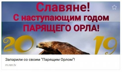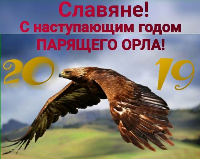 Но только в этом году к праздничному винегрету современного городского сумасшедшего добавился новый неоязыческий ингредиент. "Древнелавянский (!) тотемный (!!) годослов (!!!)". По которому якобы в 2019 году наступает "год Парящего Орла".