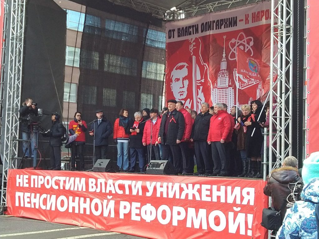В Москве состоялось согласованное мероприятие Коммунистической партии Российской Федерации. Официально - митинг "За социализм и смену власти!" в рамках Всероссийской массовой общественно-политической акции "Защитим социально-экономические права граждан!". Фактически темой № 1 стала защита решения руководителя КПРФ о передаче депутатского мандата нобелевского лауреата Жореса Алфёрова директору ЗАО "Совхоз им. Ленина" Павлу Грудинину.