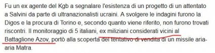 "Это боевики с экстремистскими идеологиями, отметившиеся в прошлом участием в вооруженном конфликте в Донбасском регионе Украины... Во время расследования были перехвачены телефонные звонки группы ex miliziani considerati vicini al Battaglione Azov (бывших комбатантов, считающихся близкими к батальону "Азов")". Там, кстати, еще и про Нюрберг. Кому мало, нате скрин:
