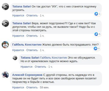 В либеральном сегменте соцсетей бухую особь предсказуемо объявили жертвой режима. Всё подстроила "кровавая гэбня". Оппозиционный Twitter-аккаунт ЯR: "Ефремов был и останется для меня Человеком с большой буквы. Да, сел за руль пьяный. Да, устроил ДТП. Но если бы он сам погиб в этой аварии, то в России стало бы одним порядочным человеком меньше. Все, кто его хуесосят сейчас — уёбки и говноеды. Спасибо, что живой, короче". Маститые либералы Максим Кац и Роман Доброхотов обвинили в случившемся власти, которые не поставили в том месте отбойник. Лучи поддержки послал экс-актёр, сексуальный извращенец и русофоб Алексей Панин. Сочувствует Ефремову и главред RT Маргарита Симоньян: "Очень не хочется, чтобы грандиозный русский актёр сидел в тюрьме". Грандиозный русский актёр? Элитка любит Мишу.