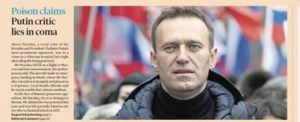 Редакционная статья на первой странице нового номера Financial Times озаглавлена: "Критик Путина в коме".