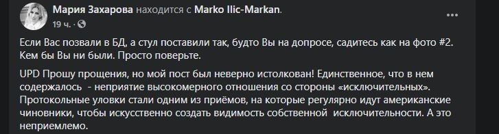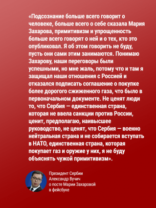 На тему заглавной фотографии, а также переписки Захаровой и Вучича в Фейсбуке.