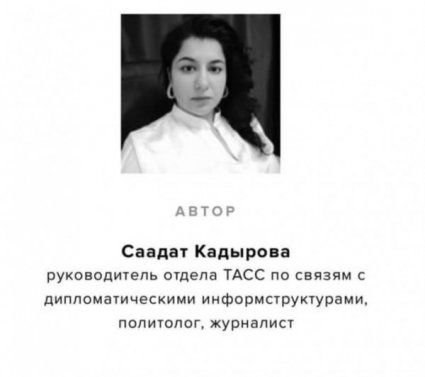 В момент подготовки материала поступили сведения об увольнении Кадыровой из ТАСС. "Прославившаяся накануне своими ксенофобскими высказываниями глава отдела ТАСС по связям с дипломатическими структурами Саадат Кадырова уволена со своей должности", - написала в Twitter обозреватель NewsFront Юлия Витязева. Но вскоре руководитель департамента корпоративных коммуникаций ТАСС Марина Порошина опровергла данную информацию.