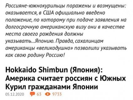 Пишет Алексей Иванов: США объявили уроженцев Южный Курил японскими подданными