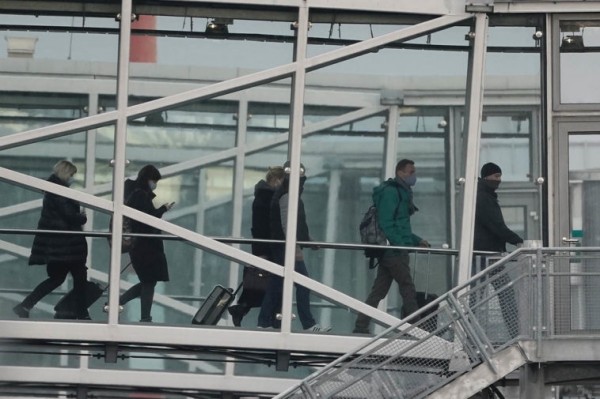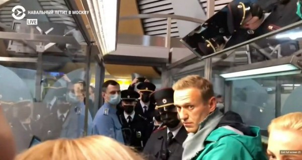 17 января в Берлине чету Навальных доставили в аэропорт на бронированной правительственной машине с мигалкой в сопровождении полиции. Их паспорта полицейские принесли на стойку регистрации в специальном чёрном ящике. Германские власти сделали всё, чтобы Алексей Навальный не смог в последний момент передумать; его фактически затолкали на рейс. В роли провожающих выступали многочисленные "сотрудники в штатском", несколько десятков корреспондентов либеральных СМИ и двое молодых людей, которые держали плакат "Время диктаторов подошло к концу. Путин боится Навального".