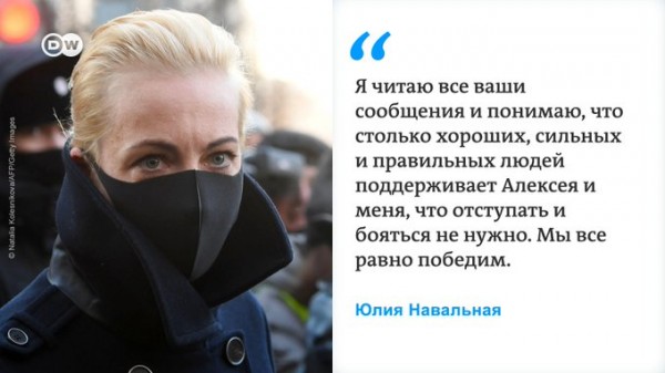 Чуть ранее крупнейшая шведская утренняя газета Dagens Nyheter (либеральная/леволиберальная ориентация) назвала Навальную "символом борьбы". Выдержки: "До сих пор Юлию называли первой леди российской оппозиции, но у неё и самой есть политический потенциал. Может ли она продолжить борьбу Навального, пока он сам сидит в тюрьме? Очернить Юлию Навальную Кремлю нелегко"; "Старшая дочь Навальных Дарья учится в Стэнфорде — отчасти благодаря карьерному плану, очень рано составленному для неё матерью. Юлия настаивала, чтобы дочь училась в одном из лучших вузов в мире и нашла ей частного преподавателя, чтобы та смогла справиться со вступительными экзаменами. Сам Навальный вырос на военной базе, как он рассказал в интервью известному русскому журналисту Юрию Дудю. Там у них был лишь одна школа, и он всегда считал, что не имеет значения, где дети учатся. Но для Юлии это играет большую роль. А воля у неё железная. В то же время Юлия Навальная хорошо разбирается в политике. К тому же она прекрасно знает, что значит быть оппозиционером в стране-диктатуре, — и это знание совершенно иное, чем, например, у Светланы Тихановской, против воли ставшей лидером белорусской оппозиции и баллотировавшейся на выборах в августе вместо посаженного в тюрьму мужа. Вот уже 20 лет Юлия Навальная ходит на демонстрации, а её дом обыскивают"; "Российская служба безопасности ФСБ отравила её мужа нервно-паралитическим ядом «Новичок». «Новичок» — это химическое оружие. Алексею удалось выжить благодаря сочетанию многих факторов, и один из них — Юлия. Прежде её в основном знали лишь в оппозиционных кругах. Она ходила на демонстрации вместе с мужем и иногда произносила речи. Знаменитостью она не была — ни в России, ни за границей. А сейчас она стала символом борьбы против авторитарной системы"; "По словам самого Навального, они постоянно обсуждают политику. Он говорит, что Юлия гораздо более радикально относится к путинскому режиму, а он по сравнению с женой — довольно «умеренный политик»"; "Юлия Навальная неоднократно показывала, что прекрасно чувствует себя на сцене"; "У Юлии Навальной стальные нервы"; "Мужество и остроумие Навальной отмечают российские аналитики. Аббас Галлямов, независимый политический аналитик и бывший кремлёвский спичрайтер, полагает, что Россия готова к лидеру-женщине".