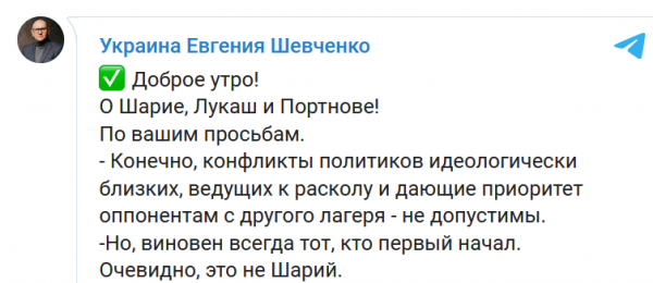 С Шарием сложнее. Он на лапу играть не хочет. И свой проект "зелени" подчинять не хочет. И что забавно, прикрыть-то его партию можно, но дело ж, по большому счету, не в партии, - она, даже прорвавшись в Раду крохотной фракцией, погоды там не сделает, - а в репутации. Он слишком сильно мочит рейтинги вах каких людей, и ему верят. Тем паче, в Европе у Шария сформировалось (как, не знаю) серьезное лобби, включая отнюдь не "пророссийский" сектор, - и хлопот не оберешься. Поэтому нужно сделать так,
