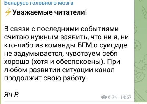 так что теперь, ежели одну или другого вдруг найдут висящим, или выловят из Вислы, или забьют битой, или еще что, реакция "демократического сообщества" ясна. Ведь они же предупреждали, что о суициде не задумывались, а стало быть, их убили, как и предупреждал Болтунец, а кто мог их убить, кроме "крававаго рэжыма" или, на крайняк, ФСБ? Ясно, что никто. Не МI-6 же...