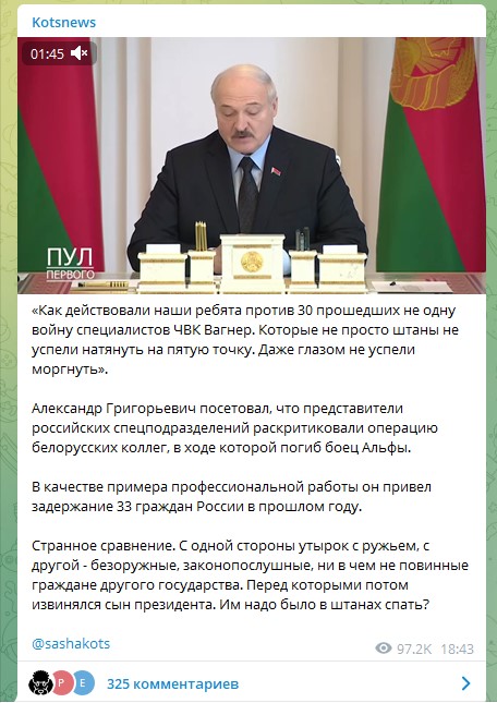 «Как действовали наши ребята против 30 прошедших не одну войну специалистов ЧВК Вагнер. Которые не просто штаны не успели натянуть на пятую точку. Даже глазом не успели моргнуть».