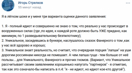 На мой взгляд, п. 2 вполне вероятен, но утверждать не рискну, п.3 тоже вероятен, но полной уверенности нет, а что касается п. 1, так Игорь Иванович, безусловно, не идиот и знает, что боевые дроны в РФ, скажем так, плохо размножаются, - однако, возможно, не учитывает тот факт, что в Белоруссии производство этих полезных вещиц поставлено на конвейер