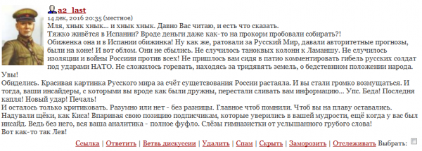 Не стану скрывать: к людям, рассуждающим в стиле "Сначала проявите себя русскими, тогда от русских будет поддержка... Россия и так есть великая держава. И свое вернет" (цитата точная, но ссылку не даю) я отношусь с брезгливым пониманием. Они, конечно, тоже ко мне как-то относятся, но мне это настолько фиолетово, что лиловый негр на фоне этого ультрафиолета сойдет за лебедь белую, - а теперь расставим точки над "ё"...