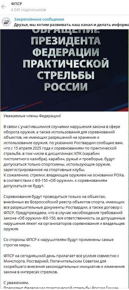 4. Чтобы глядя на эти метания, бизнес тихо охреневал и 10 раз подумал, прежде чем прийти в эту интересную индустрию, будь то производство экипировки или чего угодно, связанного со стрелковым спортом. Просто представьте данные инициативы в какой-то ещё стране с развитой стрелковой и околострелковой индустрией (те же США, но не только).