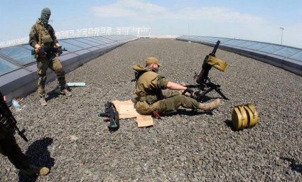 В терминал вошло еще некоторое количество ополченцев, даже успела зайти группа журналистов и пофотографировать бойцов — трудно отделаться от мысли, что ради этой фотосессии все и затевалось. Между тем, противник оборудовал огневые позиции автоматических пушек, на диспетчерской вышке появились снайперы с крупнокалиберными винтовками. К терминалу выдвинулась сводная группа украинских военных — отряды десантников и нацгвардейцев. Положение отряда становилось все более опасным.