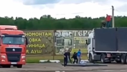 Вот они, наши русские мужики, которые забрались на фуры и пытались помешать взлету дронов.