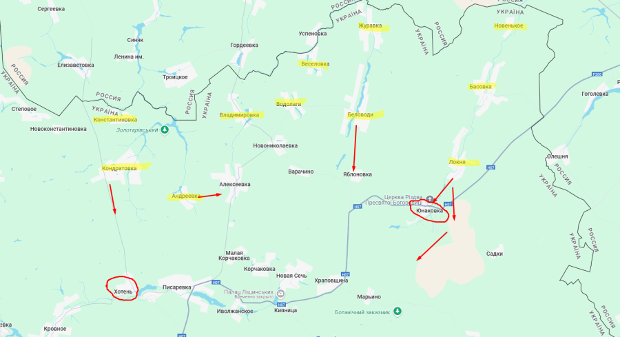 Если же смотреть в перспективе... С нынешними силами и средствами максимальные цели нашей операции это Хотень и Юнаковка. Больше требует сильно больших сил, и попыток вернуться к прорывам в глубину. К тактике 2022 года проще говоря. С повышенными плотностями войск и средств. И только тогда выйдет, правда дорого, рывки в стиле начала СВО. Если же локально... Истощение противника объективно идет. Фронт его растягивается. Одни дроны побеждать не могут. А пехоты не хватает. Но это не быстро. Очень.
