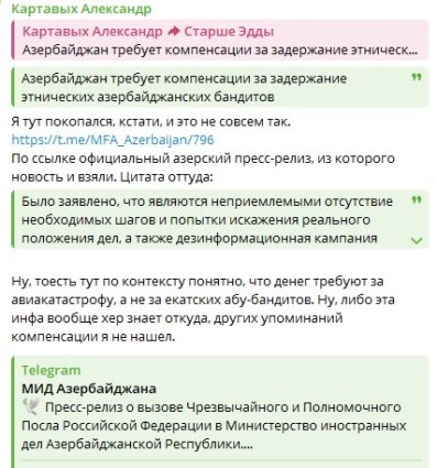 Но ответ азербайджанского МИДа чтиво, канешно, интересное. "Куртка замшевая, три!". Пожалуй, если продолжить в том же духе, то каяться нужно будет и за нашествие Тамерлана. Потомушта аппетиты приходят во время еды.