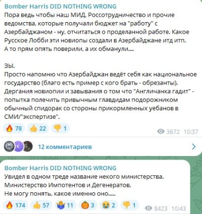 Просто напомню что Азербайджан ведёт себя как национальное государство (благо есть пример с кого брать - обрезанты).
