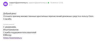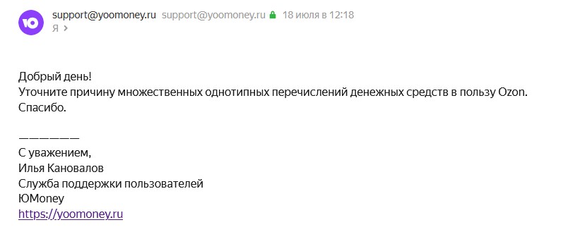 Вчера мы лишились наших кошельков в системе ЮМани (ЮMoney), бывший Яндекс.Деньги. Идиотская реализация законов и изумительные люди в НКО "ЮМани" закрыли наши кошельки по подозрению, ВНИМАНИЕ!, в отмывании денег!!! ... за ... БАРАБАННАЯ ДРОБЬ!!! ... множественные платежи в сторону "ОЗОН"!!!