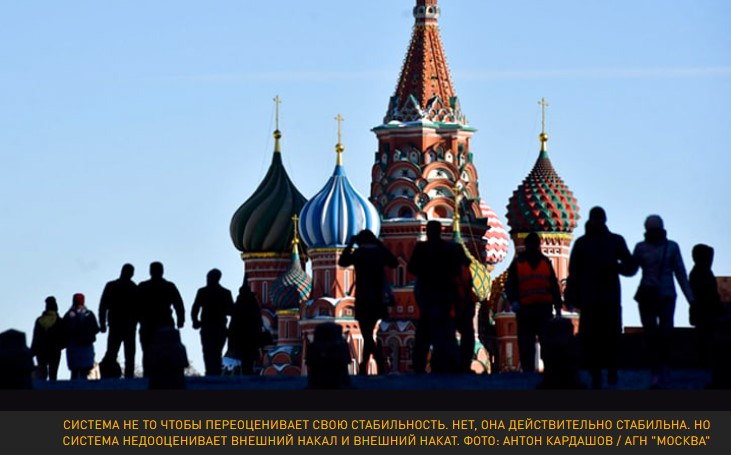 "Система считает, что главным её оружием является как раз стабильность, когда любое лишение устойчивости является попыткой её ослабить в целом, а значит, враждебным актом. Это очень большой, труднопреодолимый соблазн — определить собственный комфорт общественным благом."