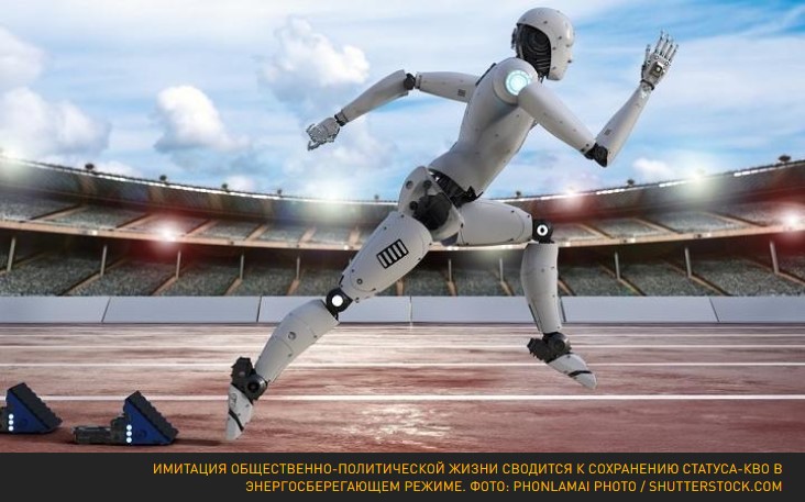 Общественные процессы современной России таковы, что реальной целью нынешнего общественного обустройства стал известный афоризм из "Алисы в стране чудес", где чтобы стоять на месте, иногда нужно быстро бежать. Имитация общественно-политической жизни сводится к сохранению статус-кво в энергосберегающем режиме. Именно этим объясняются на первый взгляд странные законодательные, общественные, а в ряде случаев и экономические инициативы по запретам, сушке, дойке и муштрованию общества.