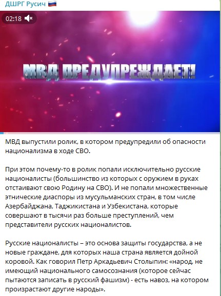Русская община — это не дети, от нечего дела сбившиеся в компании, это 35-45- летние отцы семейств, которые вышли из своих квартир и домов защищать свои семьи и жилища. Заставить отца семейства выйти в чаты, искать единомышленников, оставить тяжким трудом созданный домашний уют и идти на улицу с готовностью столкнуться со среднеазиатскими дикарями может только ситуация чрезвычайная, крайняя, абсолютная. Ситуация, когда домохозяин не видит помощи от родного Министерства внутренних дел и вынужден действовать.