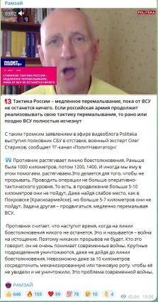 Проще говоря — Шурыгин может сколько угодно "объяснять невозможность прорыва его невозможностью", но даже в текущей войне противник пару раз сумел решить данную задачу САМЫМ БАНАЛЬНЫМ СПОСОБОМ — сосредоточением намного превосходящих сил против гораздо слабейшего противника (Изюм — Балаклея, Давыдов Брод). Да, сейчас "террор БПЛА" серьёзно затруднил возможность создания такой ситуации, при которой удаётся быстро (!!!) и относительно скрытно собрать превосходящие силы и организованно ввести их в бой — но и дроны не способны отменить "азы" военного искусства — побеждает тот, кто способен собрать в нужном месте в нужное время больше сил, чем есть у противника, и грамотно их применить. А если "танцору мешают ноги" — то да — военная наука и искусство тут безсильны. Впрочем, в своих стараниях убедить население (особенно — патриотически настроенное), что "всё, что делается — хорошо и единственно-правильно!" — Шурыгин не одинок. Недаром он один из "штатных" комментаторов на канале Соловьёв-лайф". Там только таких вот … и держат.