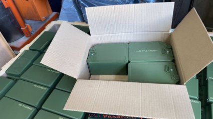 Первая тысяча корпусов противотанковых мин для дистанционного минирования отправляется на фронт. Также 750 пулемётных коробов для ПКМ и другие полезные железки: полторы тонны металлопроката для построения танковых мангалов.