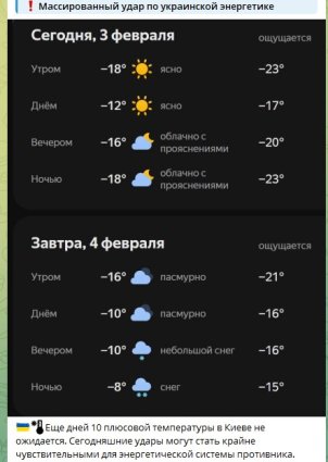 Еще дней 10 плюсовой температуры в Киеве не ожидается. Сегодняшние удары могут стать крайне чувствительными для энергетической системы противника.