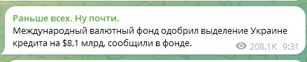 Россия выделила Украине кредит на войну с Россией в размере 219 млн долларов.