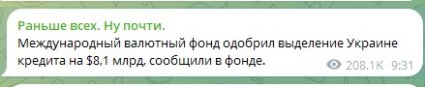 Международный валютный фонд одобрил выделение Украине кредита на $8,1 млрд, сообщили в фонде.