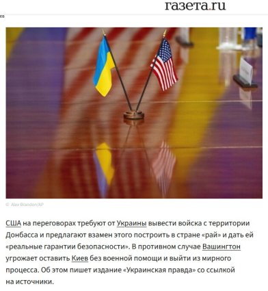 "США и РФ усилили давление на Украину с требованием вывести ВСУ с Донбасса. В противном случае Трамп может выйти из переговоров и переключить внимание на Иран", — УП