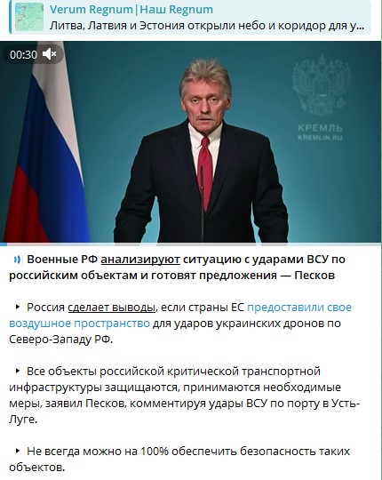 Что удары по Усть-Луге проходили под контролем шведских ВВС и НАТО. Видимо все-таки у Пескова есть доступ к OSINT, но с задержкой в несколько дней.