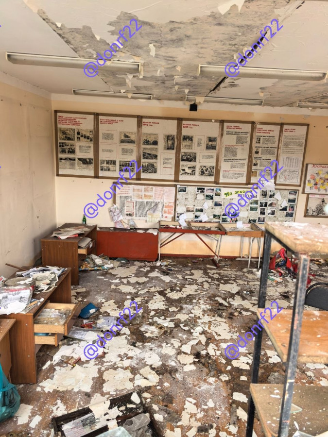 Это школа. Хутор Бердин Курской области РФ. Точнее село Разгребли, но местные говорят что Бердин. Им виднее наверное, не суть. Хорошая школа. Была. Дети учились, в Сети есть масса фото до. Сейчас вот так. Два плюса. Походя. Просто потому как на Бердин шли хохлы. А хохлы перед тем как идти выносят все общественные здания. Чисто на всякий. По принципу - а вдруг там военные укрываются. Что летело в школу я не знаю. На Химарс похоже. Не суть.