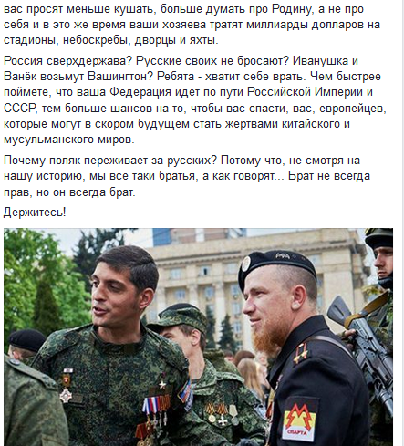Почему поляк переживает за русских? Потому что, не смотря на нашу историю, мы все таки братья, а как говорят... Брат не всегда прав, но он всегда брат.